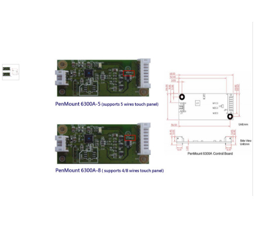 A 型號是一款使用了功能強大的 控制晶片之 USB 介面控制板,可以支援 4-, 8- 線或者 5- 線式的電阻式觸控面板。控制板有兩種連接器,一端是連接 USB 線材的連接介面,而另一端是需藉由延伸線連接至 4-, 8- 線或者 5- 線式的觸控面板,A 控制板是搭配各廠牌電阻式觸控面板的最佳選擇。