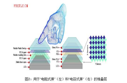 我们将深入了解一下两个最常用的触控屏技术。使用最广泛的技术是电阻式触控。绝大多数人可能以前都在银行的ATM机上、许多商场里的信用卡检查机、甚至是在餐馆里输入一个订餐单时用过这类电阻式触控技术。而投影型电容式触控屏,使用的范围还没有这么广,但具有快速发展动力。许多采用投影型电容式界面的手机和便携式音乐播放器都在投放市场。无论是电阻式或电容式技术都有一个坚固的电组件,都利用ITO(氧化铟锡,透明导体),这两种技术都会长期使用。